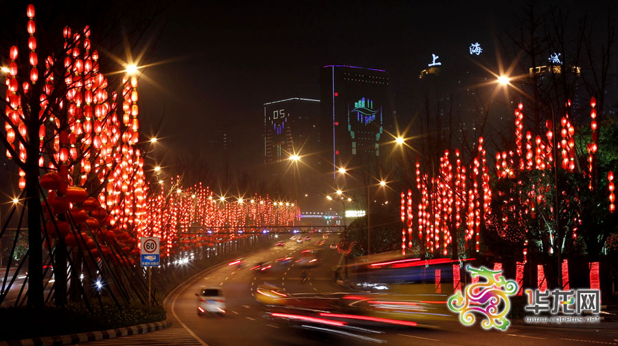 南坪江南大道的红灯笼预示着新的一年红红火火。 记者 李文科 摄