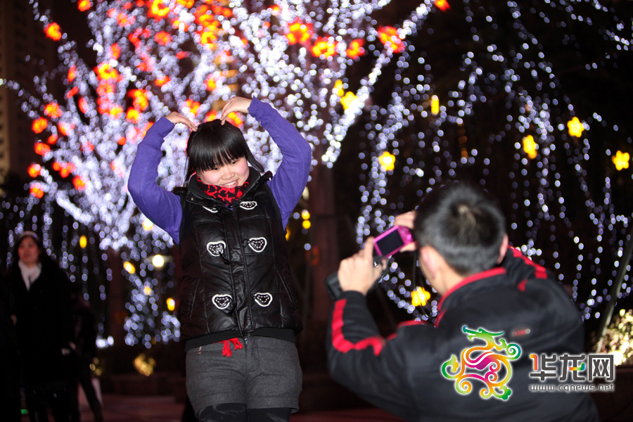 华龙网1月28日10时讯(数字记者 李文科) 农历新年即将到来,重庆主城区纷纷大打夜景牌,美丽的灯饰为山城夜景增色不少,一到晚上,火树银花,一片喜庆。就连路过步行街的市民也忍不住掏出相机,留影一张。