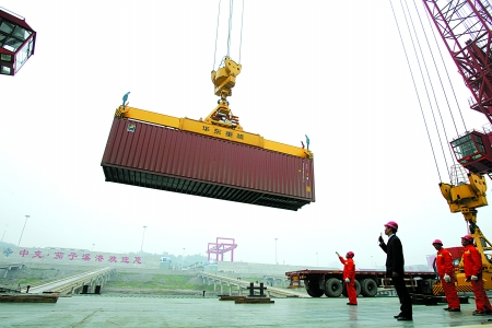 “以前我们的产品到寸滩港上船,比起茄子溪港要多出80~100元/吨的运输费用。”重庆国际复合材料有限公司相关人士介绍,其公司总部在建桥C区,年产量20万吨,产品销往华东、华南、沿海等地,还有约50%的产品销往国外,从茄子溪港上船可节省一笔非常可观的运输成本。